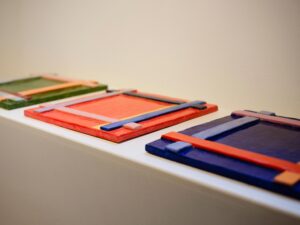 Auszeichnungen und Keramikreliefs in der Ausstellung Werkstatt Hildegard Schenk