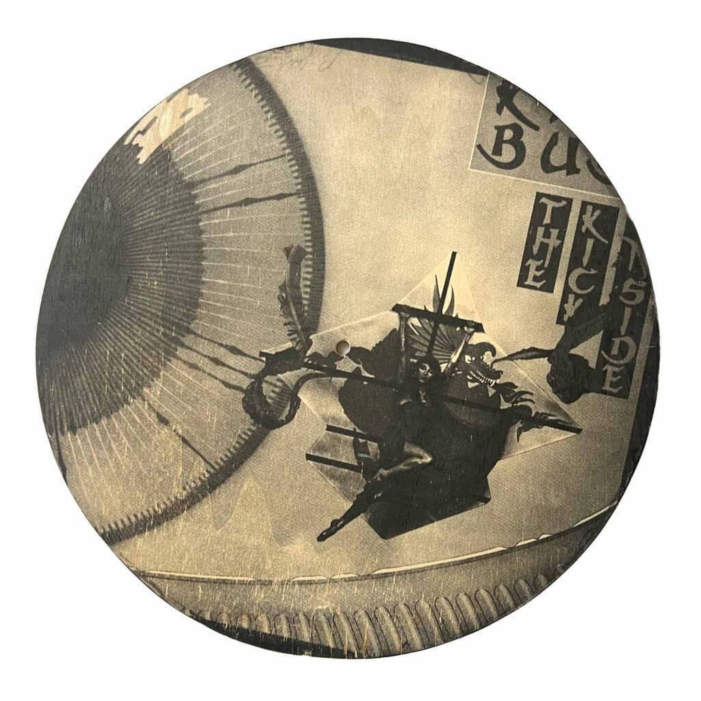 Verschiedene Plattenhüllen aus den 70er und 80er Jahren wurden mittels Siebdruck und schwarzer Druckfarbe auf Sperrholz in Plattengrösse gedruckt. Die Hülle wurde zum zur Schallplatte.