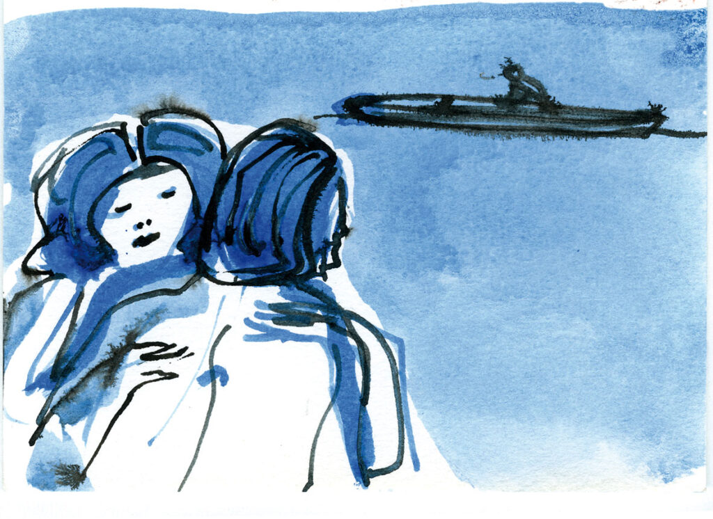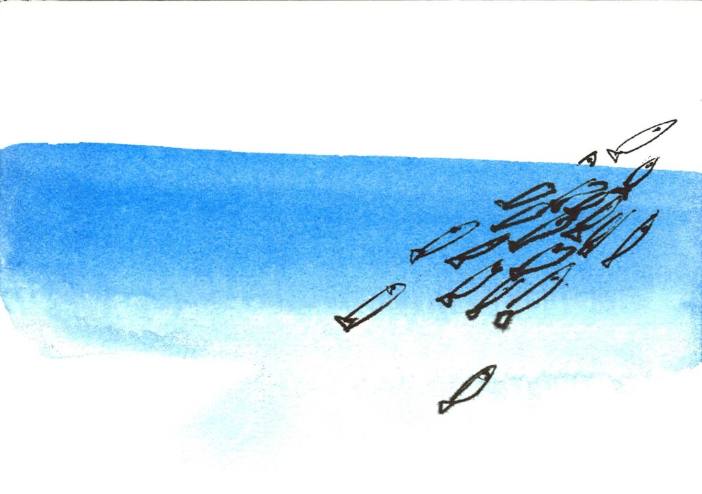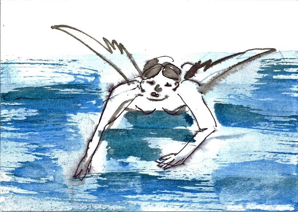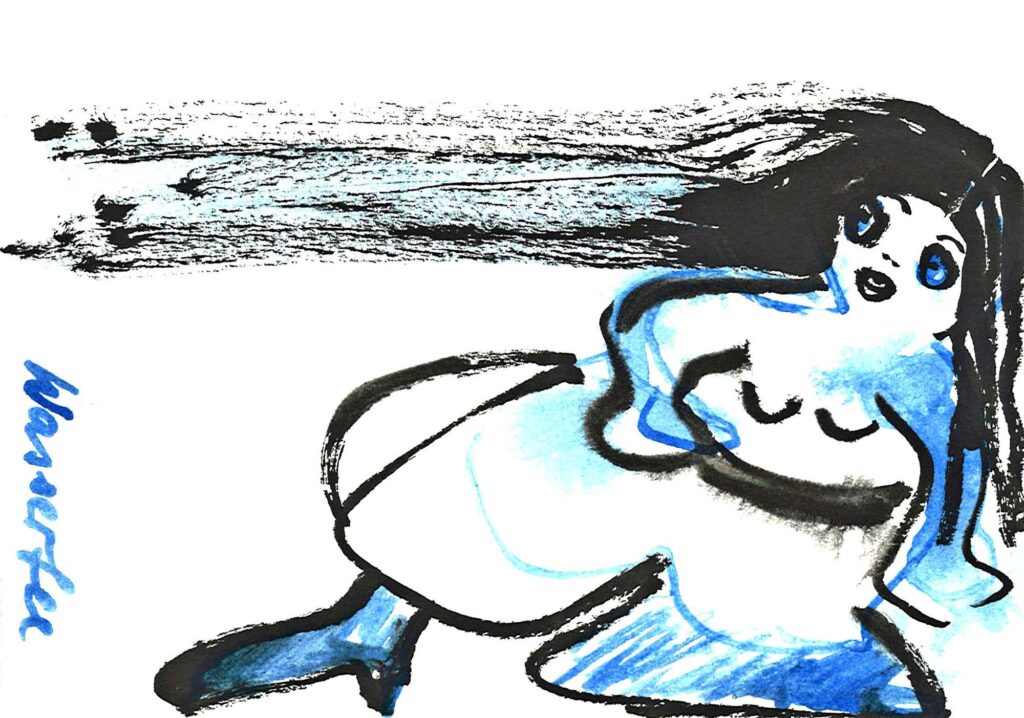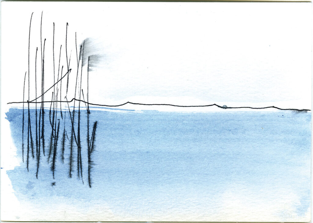 Die Serie «Seebilder» im A5-Format sind Zeichnungen mit blauer und schwarzer Tinte auf Papier. Sie entstanden im Zusammenhang mit der Aktion «Drunter und Drüber» im Jahr 1997 und wurden später im Digitaldruck auf das Format 42 x 60 cm vergrössert.